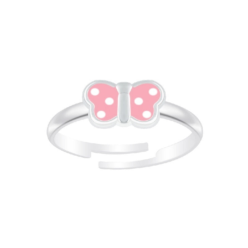 Children's Sterling Silver Adjustable 'Pink Spotty Butterfly' Ring Crafted from sterling silver, our pretty 'Pink Spotty Butterfly' ring would make a lovely addition to any little girl's jewellery box.